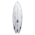 Inspired by the sleek outline of a great the white shark the Great White Twin is a hybrid twin fin with the paddle power of a fish and the on rail abilitles of a shortboard.
