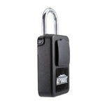 - Hardened steel shackle plastic coated to protect car